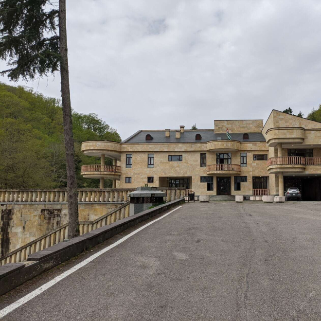 Далее, через город Гагра, мы с вами едем мюссерский заповедник, где заедем на дачу Горбачёва. Увидим богатый пятиэтажный особняк советского периода, декором которого занимался Зураб Царители, расположенный в уютной бухте на территории в 44 га.