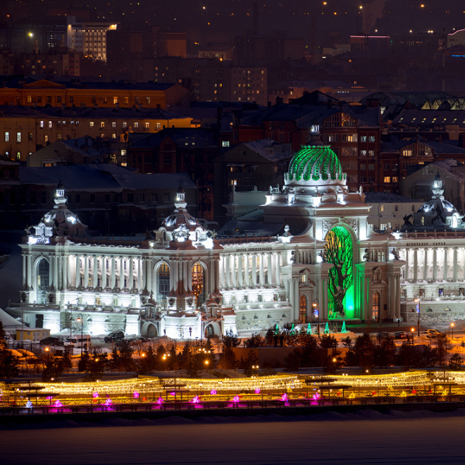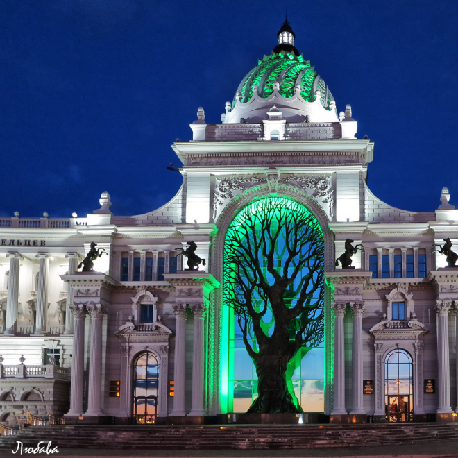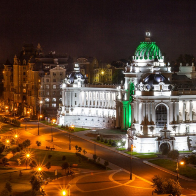 Вы узнаете многовековую историю площади 1000-летия, рассмотрите величественный дворец Земледельцев и прогуляетесь по эффектно подсвеченной Кремлевской набережной. А также увидите чашу Казан — новый символ города. Я поделюсь легендами о Зиланте и Барсе.