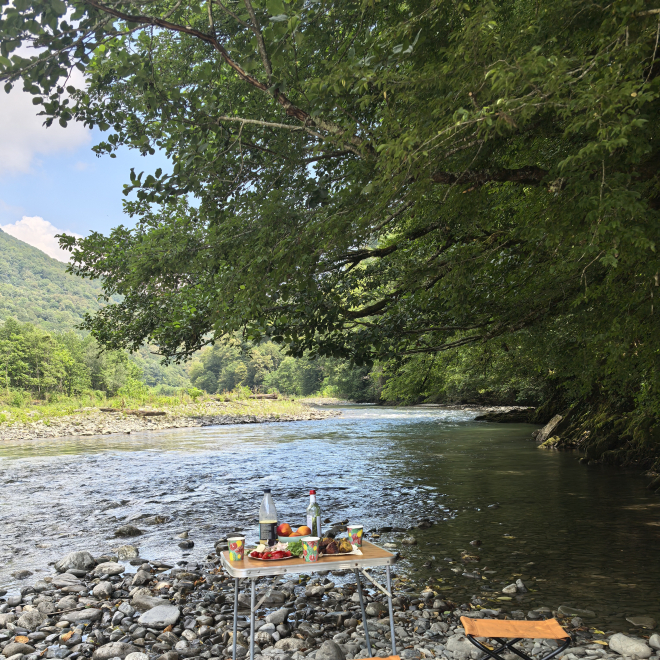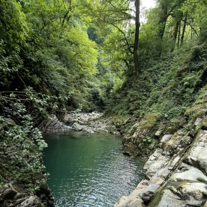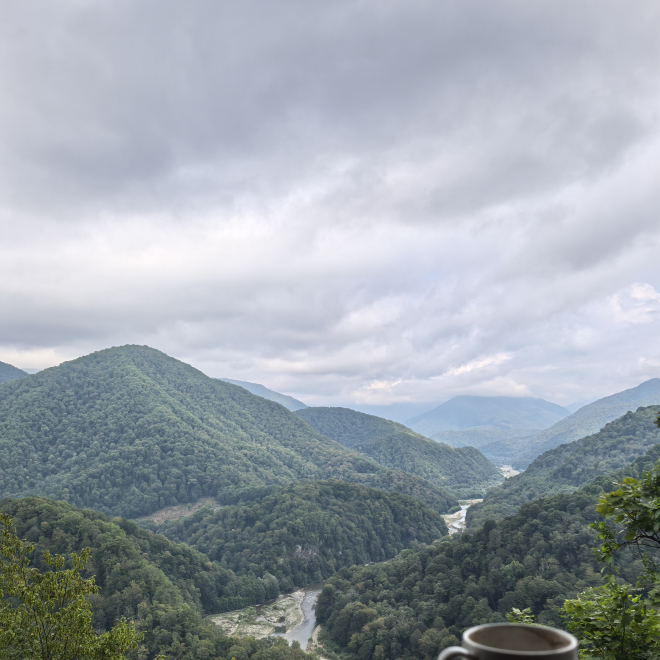 3. Ключевая Пауза: Смотровая площадка на реку Шахе: Главный аккорд начала пути! Забудьте о суете. Здесь, на высоте, время останавливается. Перед вами откроется грандиозная панорама: изумрудная лента реки Шахе, могучее ущелье, поросшее реликтовыми лесами, и бескрайние горные хребты, уходящие к горизонту. Это ваше первое глубокое погружение в величие нетронутой природы Кавказа.Сделайте незабываемые фото — вид отсюда поистине эпичен.