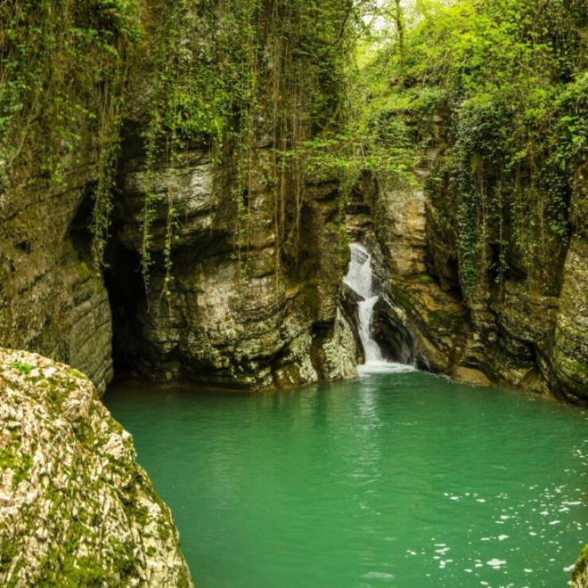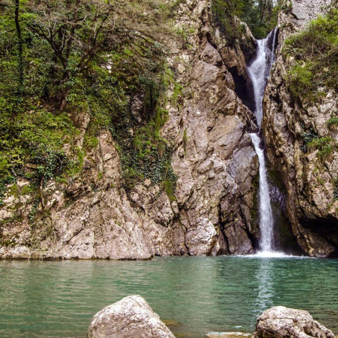 После посещения смотровой башни, экскурсия продолжается походом по Агурскому ущелью, к красивейшим водопадам.
